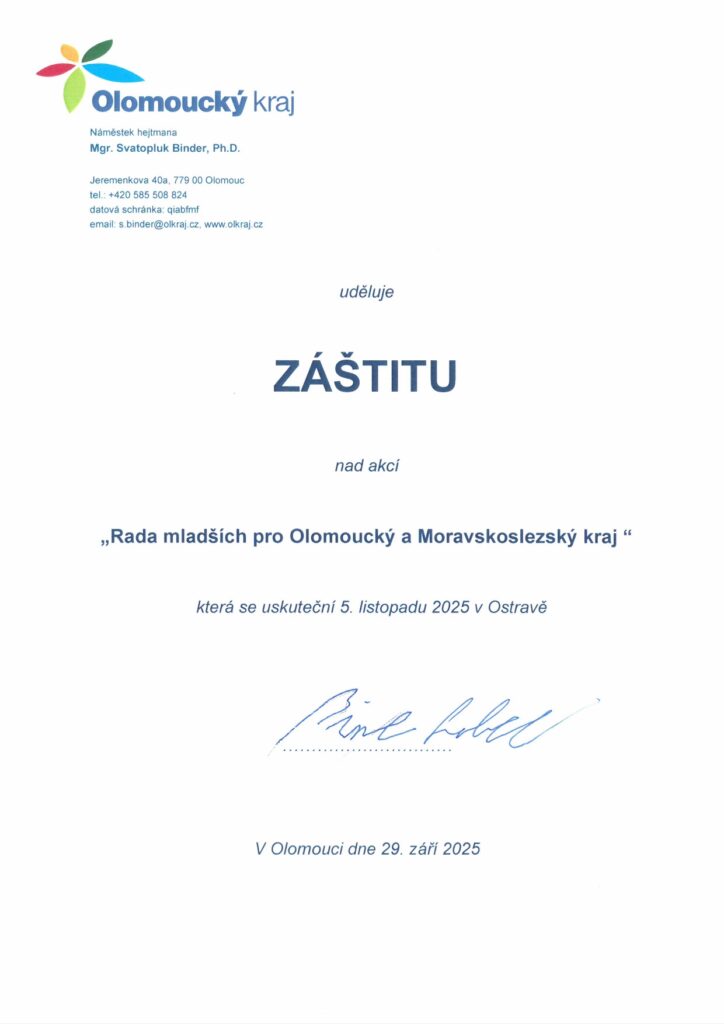 Akce se koná pod záštitou hejtmana Moravskoslezského kraje Ing. Josefa Bělici, Ph.D., MBA, náměstka hejtmana Moravskoslezského kraje RNDr. Jana Veřmiřovského, Ph.D., MBA, LL.M., MPA, MSc., hejtmana Olomouckého kraje Ladislava Oklešťka a náměstka hejtmana školství, cestovní ruch a vnější vztahy Olomouckého kraje Mgr. Svatopluka Bindera, Ph.D.